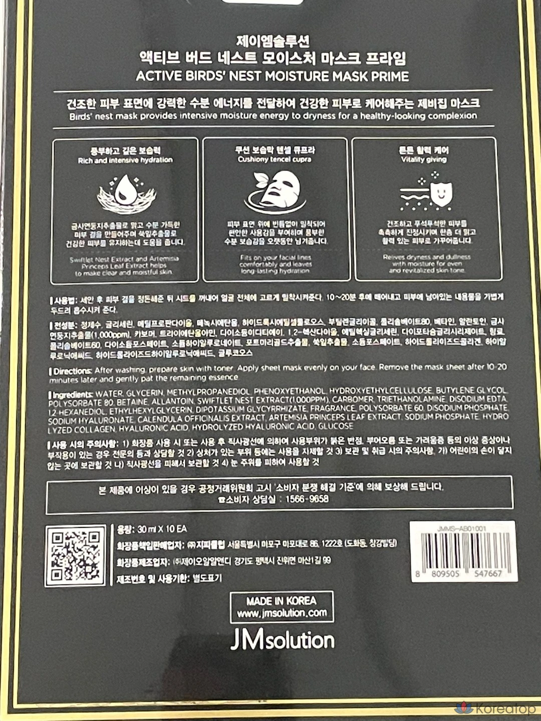 Увлажняющая маска для лица JM Solution Active Bird's Nest, 30 мл, 10 штук