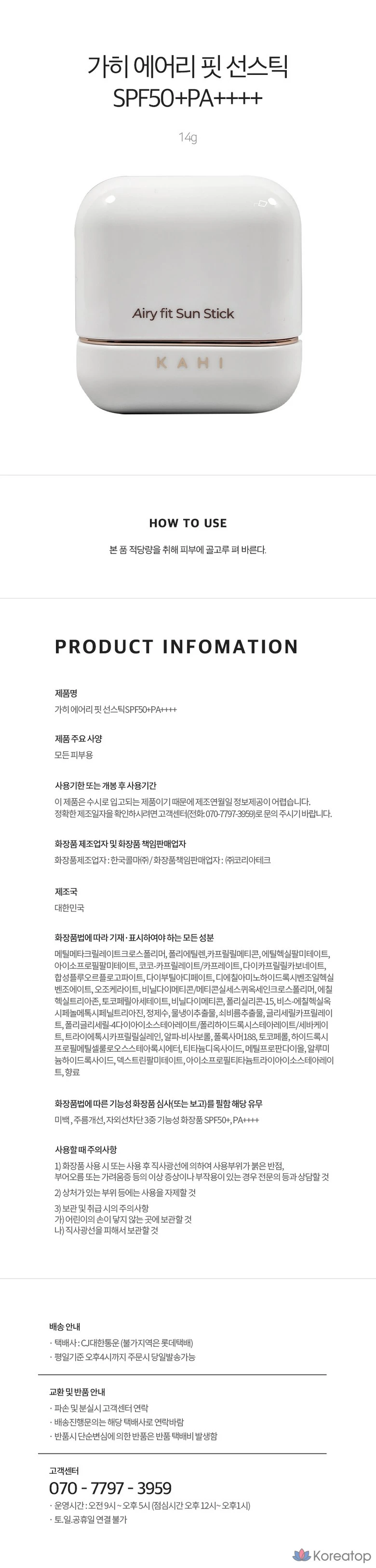Солнцезащитный стик KAHI Airy Fit SPF50+ PA++++ 14 г
