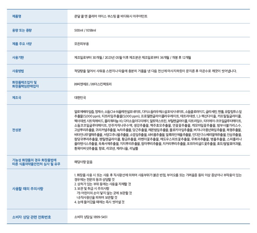 Гель для душа Kundal Cool & Clear Ice Boosting Cool Body Wash Aqua Mint, 1,058 л, 1 шт.
