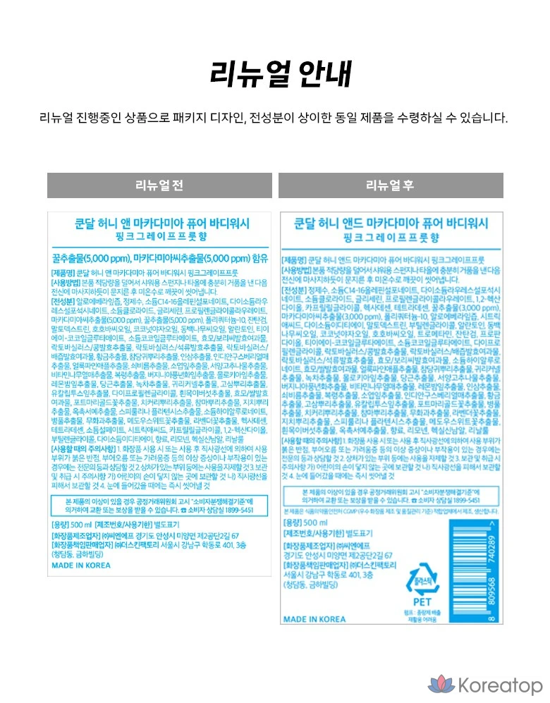 Гель для душа Kundal Honey & Macadamia Pure Body Wash, аромат розового грейпфрута, 500 мл, 1 шт.