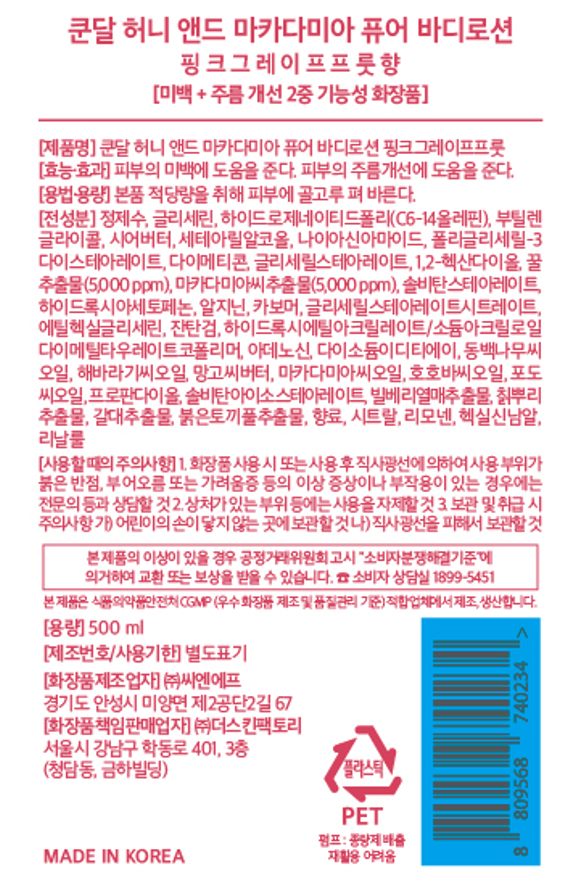 Kundal Honey & Macadamia Pure лосьон для тела «Розовый грейпфрут», 500 мл, 1 шт.