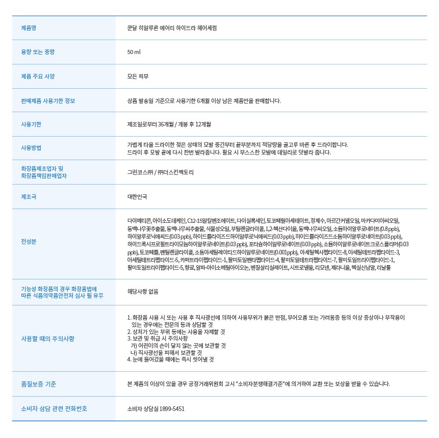 Kundal Hyaluronic Airy Hydra Сыворотка для волос, 50 мл, 1 шт.