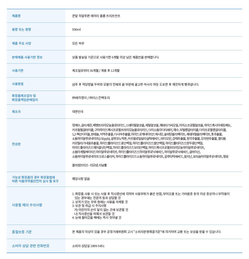 Kundal Hyaluronic Airy Volume Treatment Blossom Breeze, 1 шт., 718 мл