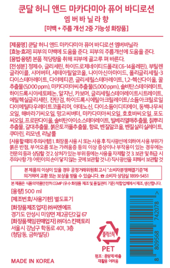Лосьон для тела Kundal Honey & Macadamia Pure Body Lotion Amber Vanilla, 500 мл, 1 шт.