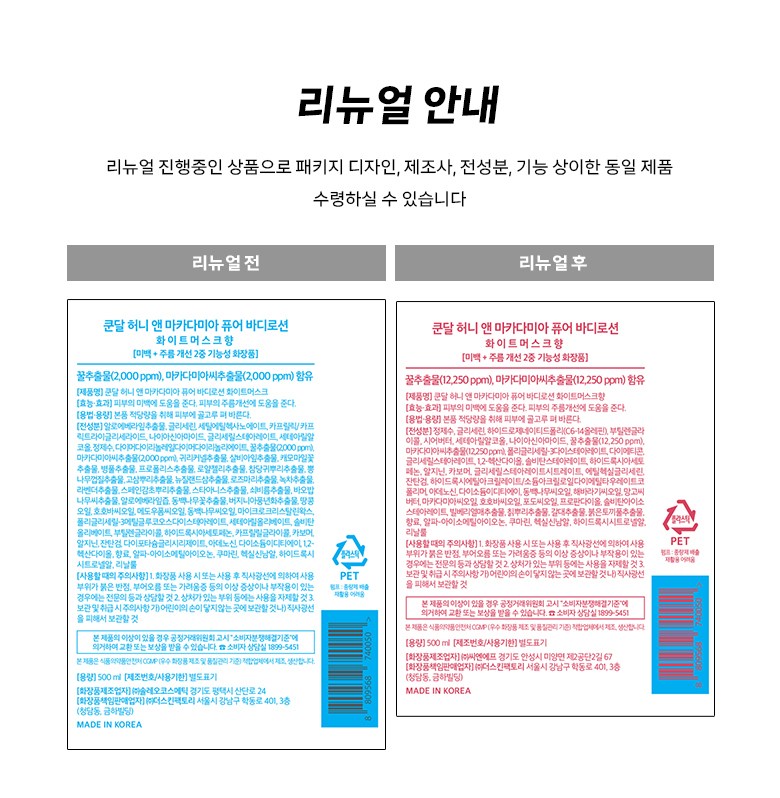 Лосьон для тела Kundal Honey & Macadamia Pure Body Lotion, аромат белого мускуса, 500 мл, 1 шт.