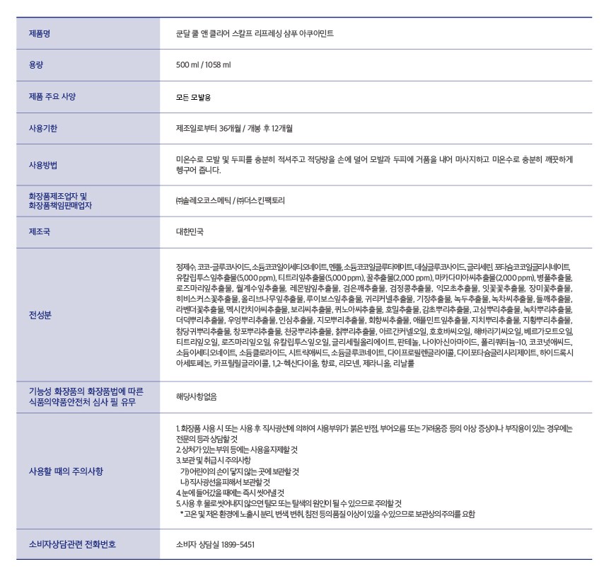 Освежающий охлаждающий шампунь для кожи головы Kundal Cool & Clear с ароматом аквамяты, 500 мл, 1 шт.