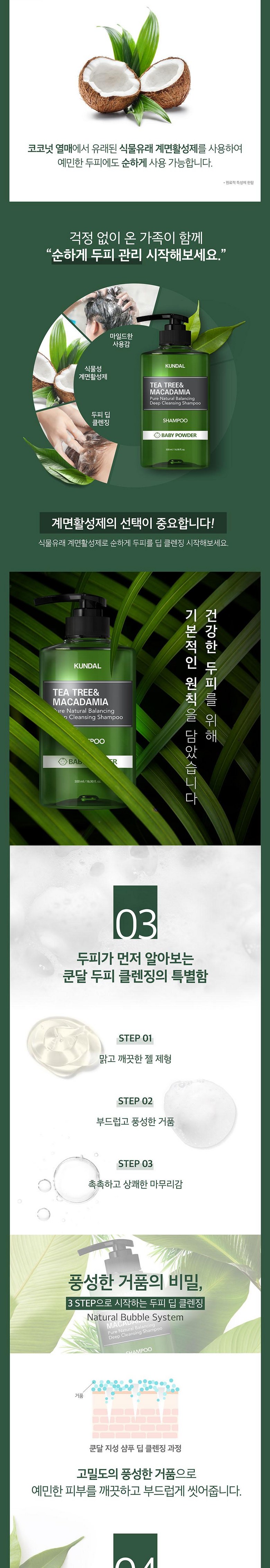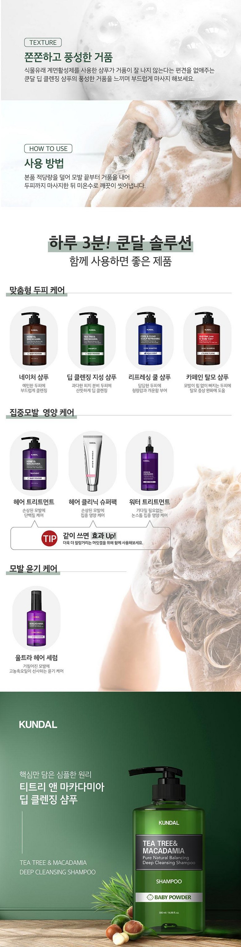 Шампунь для глубокого очищения Kundal с маслом чайного дерева и макадамии, аромат детской присыпки, 500 мл, 1 шт.