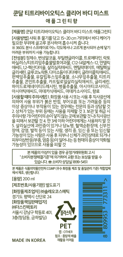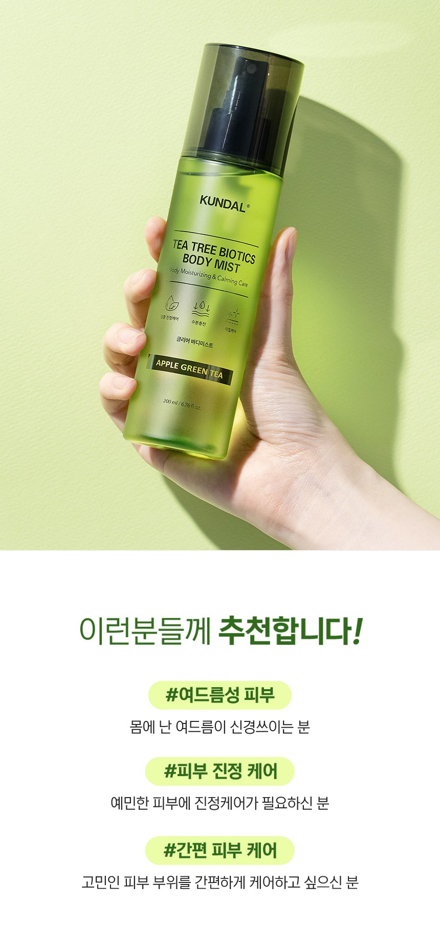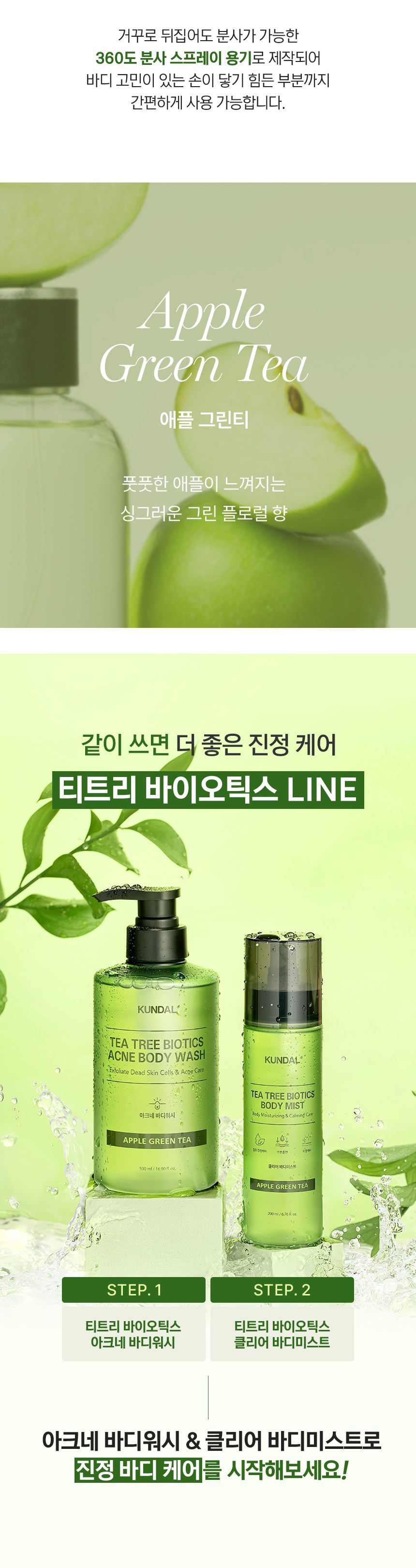 Спрей для тела Kundal Tea Tree Biotics Clear Body Mist с ароматом яблока и зеленого чая, 200 мл, 1 шт.