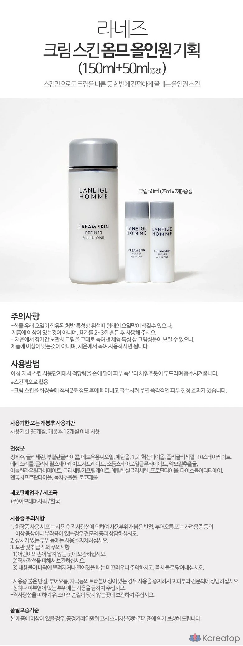 Laneige Homme Cream Skin Homme All-in-One, 150 мл, 1 шт., 200 мл