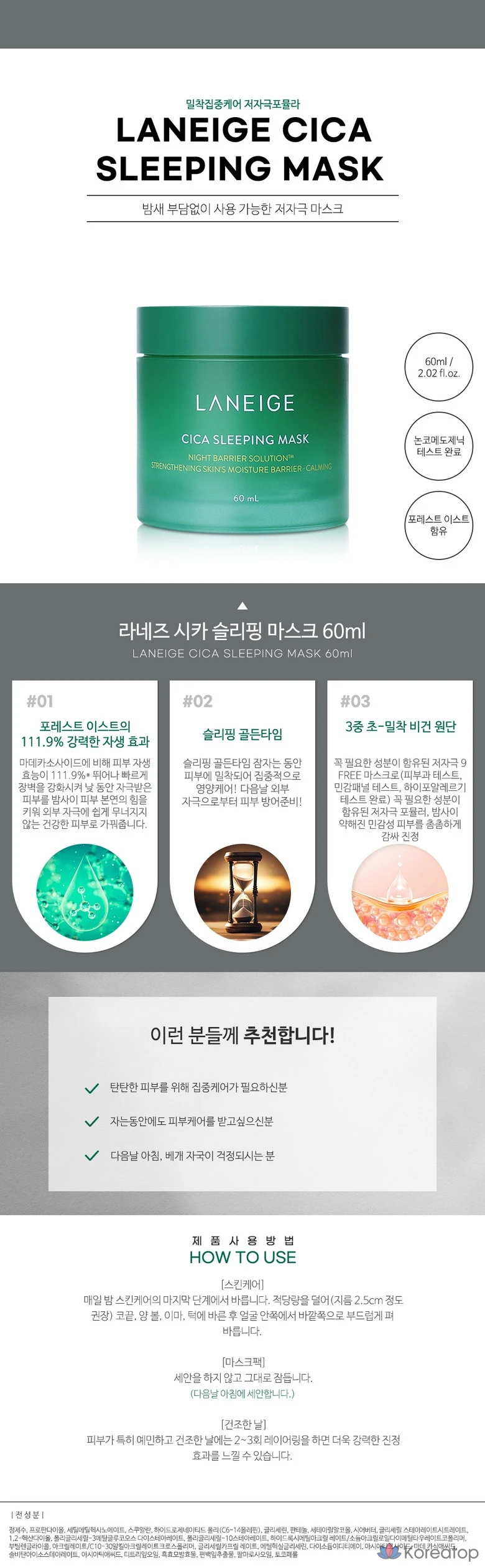 Ночная маска для лица Laneige Cica, 60 мл, 1 шт.