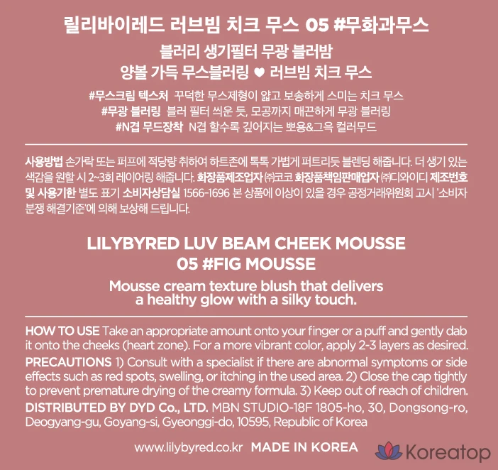 Румяна Lilybyred Love Beam Mousse Cheek, 3,8 г, 03 Pomelo Mousse, 1 шт.