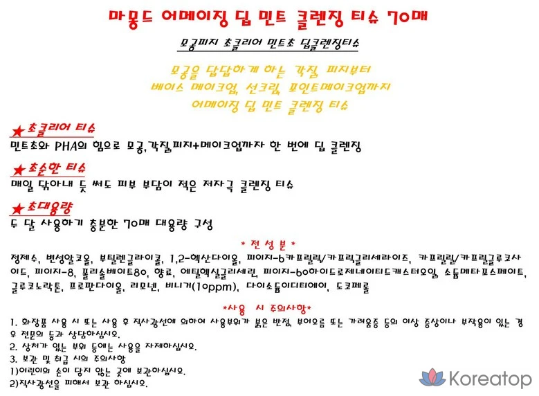 Очищающие салфетки Mamonde Amazing Deep Mint, 70 листов, 1 упаковка