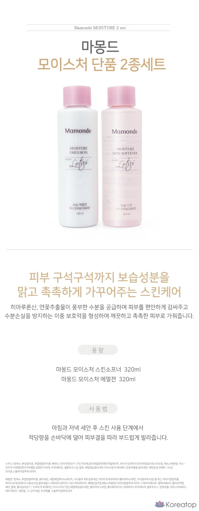 Увлажняющий лосьон для лица Mamonde, большой объем, 2 вида, 320 мл, 1 шт.