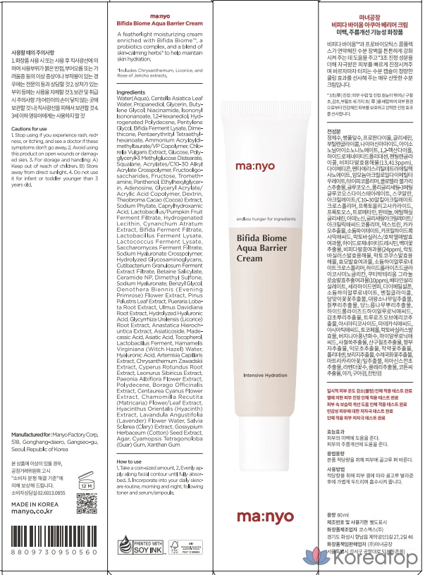 Manyo Factory Bifida Biome Aqua Barrier крем, 80 мл, 1 шт.