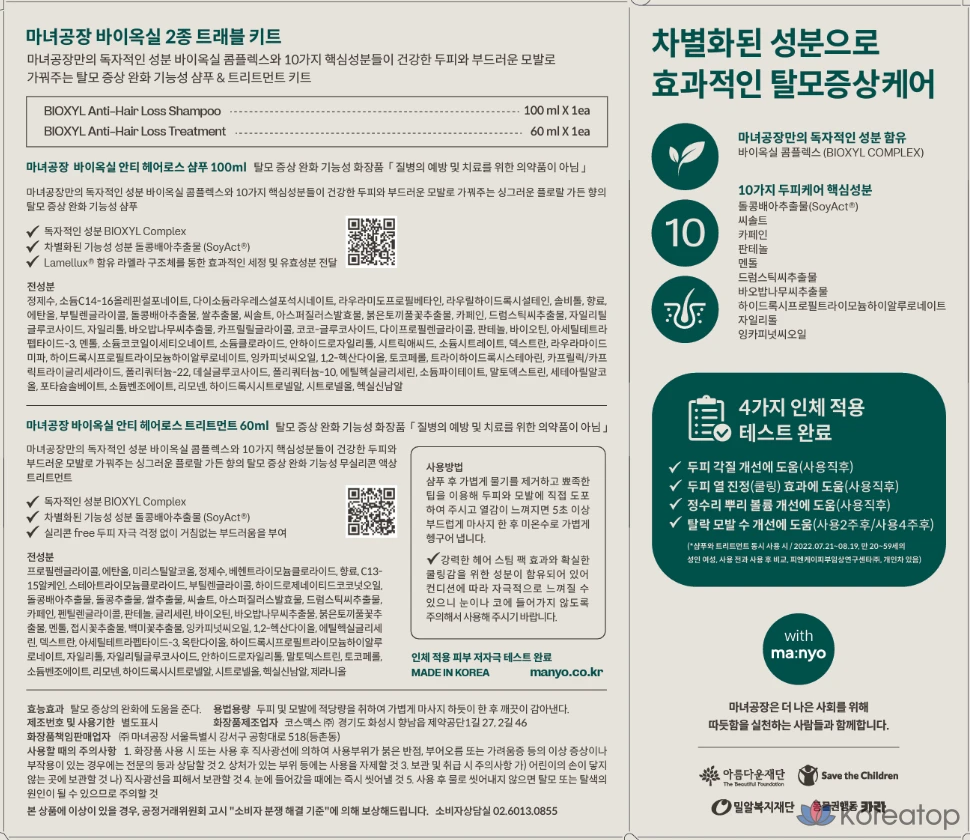 Набор Manyo Factory Bioxyl: дорожный шампунь 100 мл + средство для ухода 60 мл, 1 комплект.