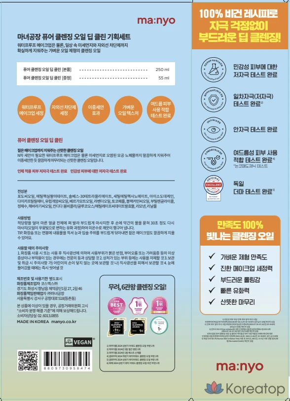 Очищающее масло Manyo Factory Pure для глубокого очищения, 250 мл + 55 мл, набор из 2 предметов, 1 комплект