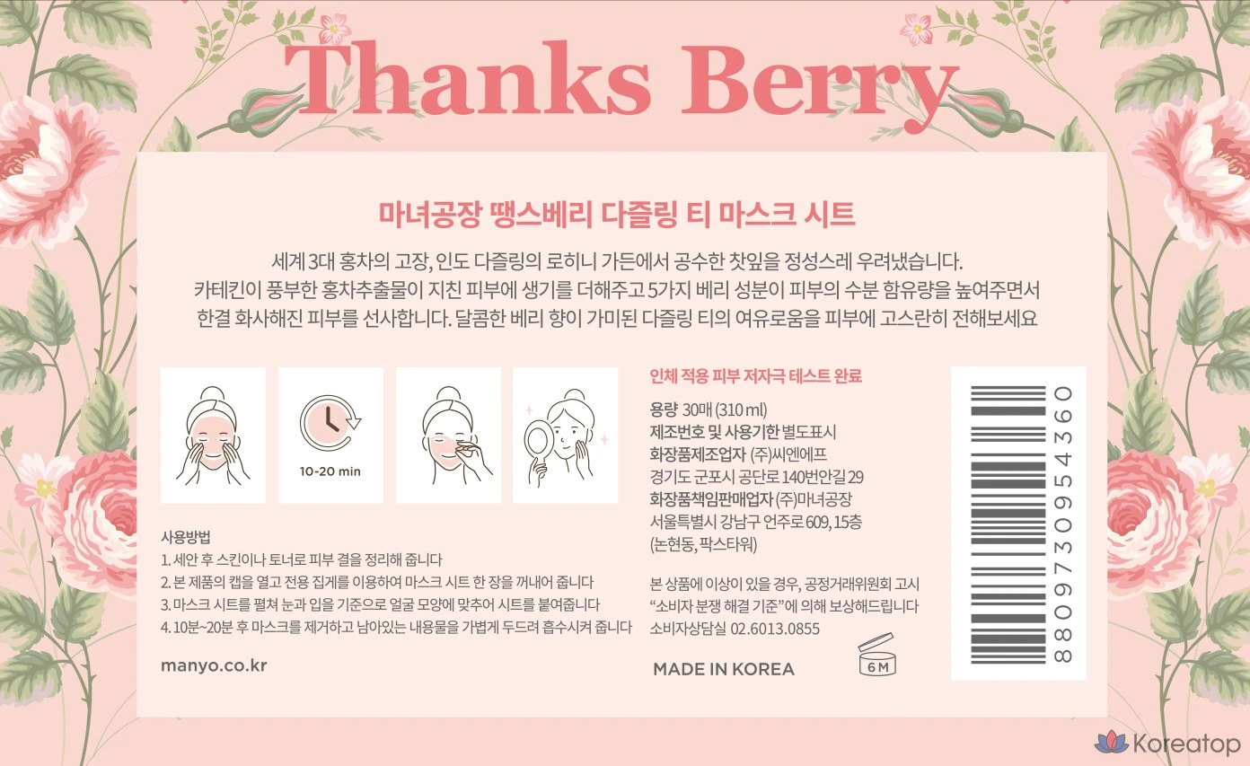 Тканевые маски для лица Witch Factory Thanksberry Dazzling Tea Mask Sheet, 30 штук, 1 упаковка