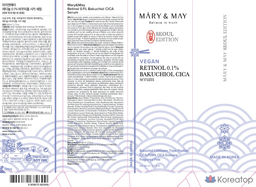 Marienmay Ретинол 0,1% Сыворотка Бакучиол Цика, 1 шт., 80 мл