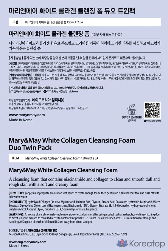 Очищающая пенка для лица Marienmay White Collagen, 150 мл, 1 шт.