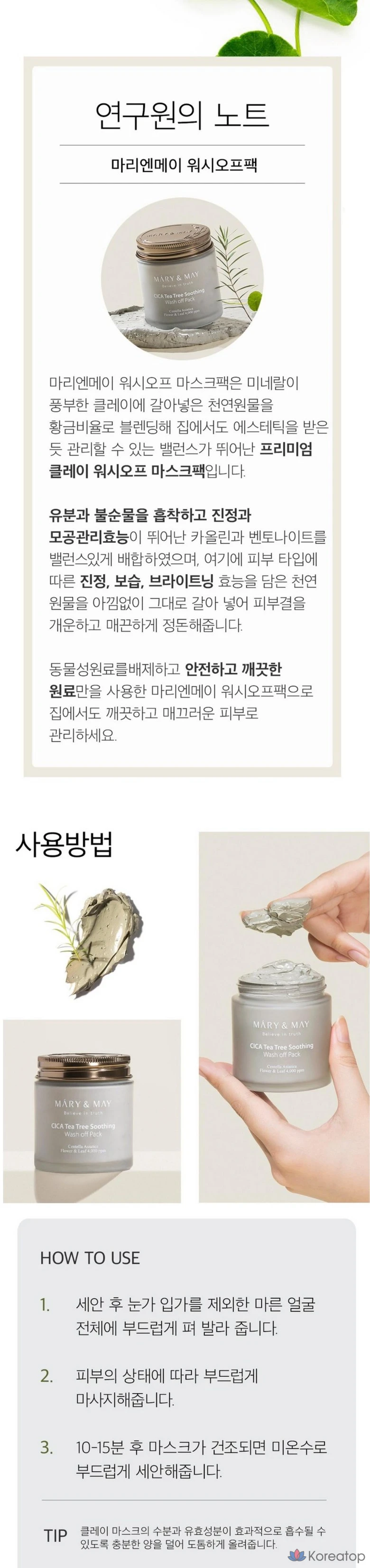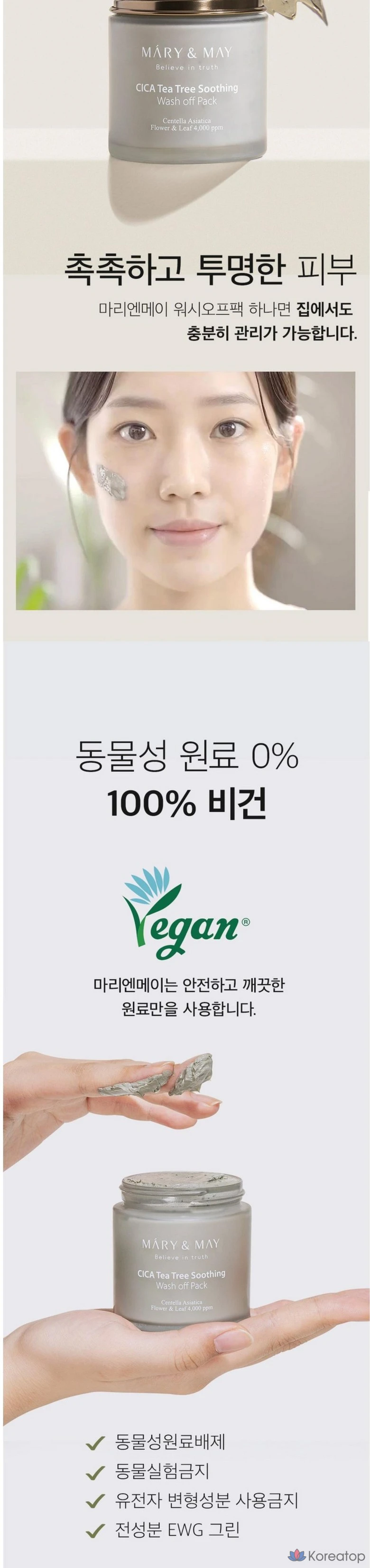Успокаивающая смываемая маска для лица Marienmay Vegan Cica Tea Tree, 125 г, 1 упаковка.