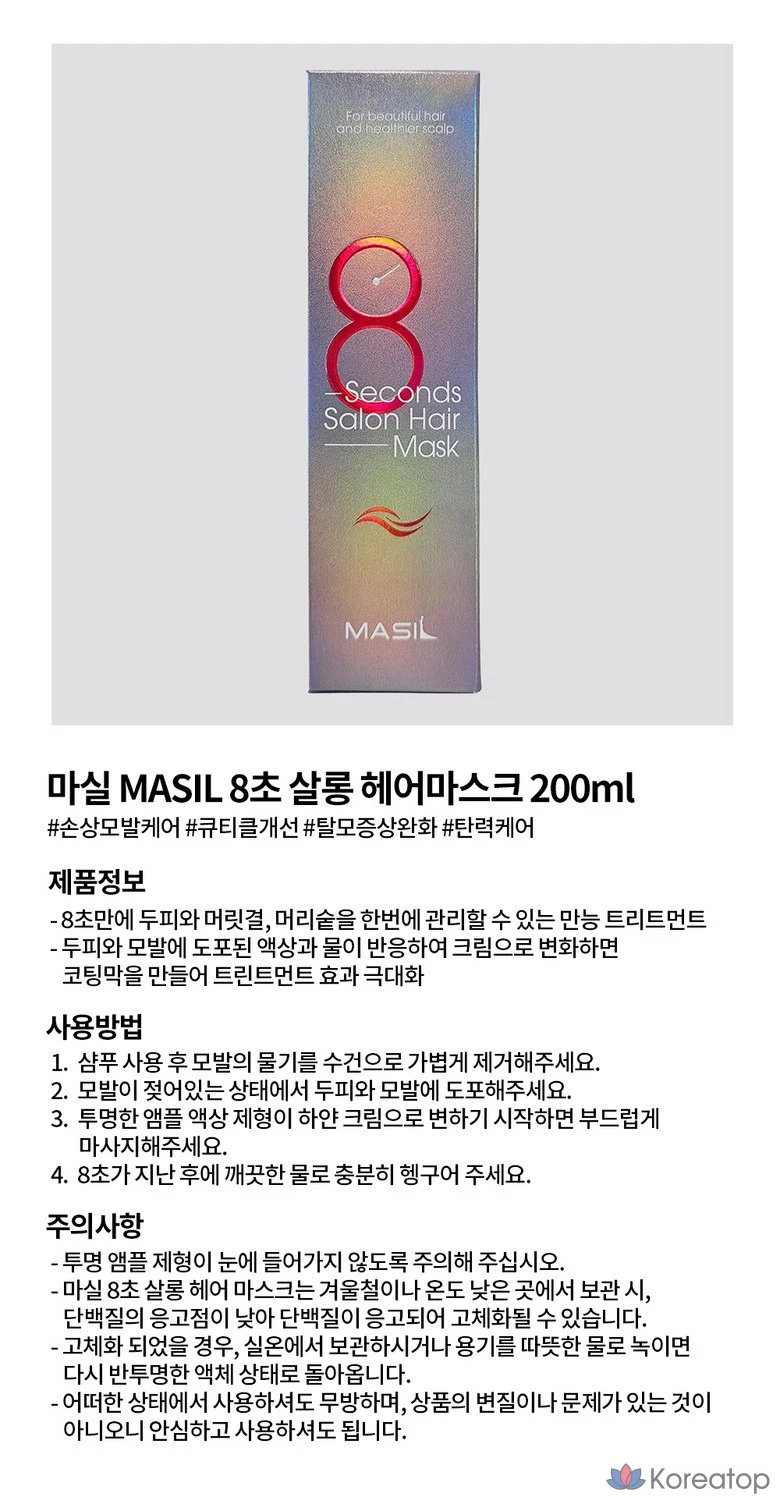 Салонная маска для волос Masil 8 секунд, 100 мл, 1 шт.