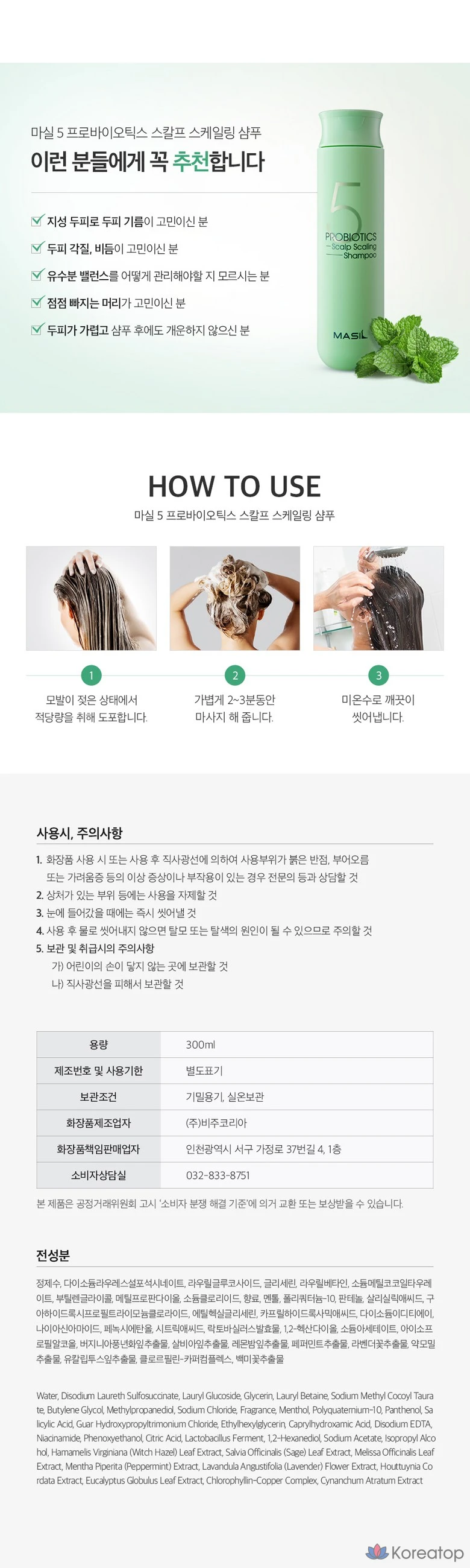 Шампунь Masil 5 Probiotic для очищения кожи головы от шелушения, 300 мл, 1 шт.