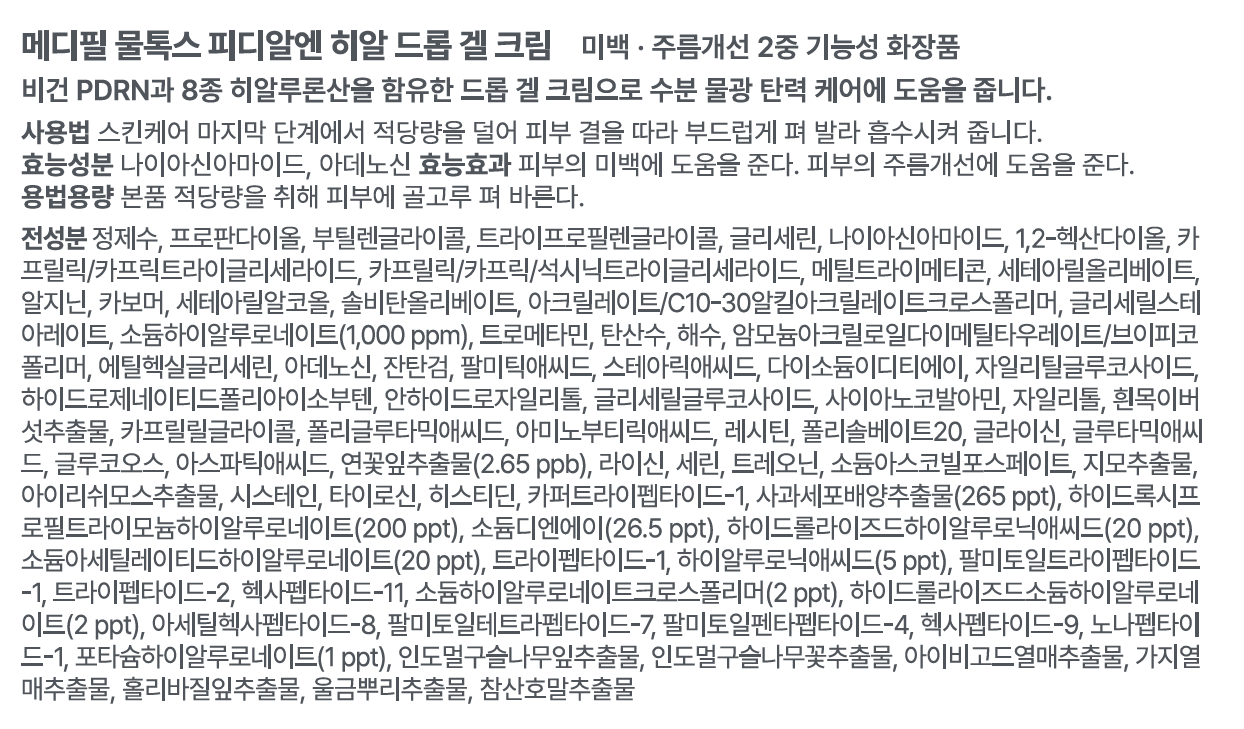Лёгкий гель-крем с формулой на водной основе моментально впитывается, не оставляя липкости. Комплекс PDRN и гиалуроновая кислота работают на глубокое увлажнение и улучшение барьерных функций кожи. Идеален для ежедневного ухода, придаёт ощущение свежести и комфорта. 🌊