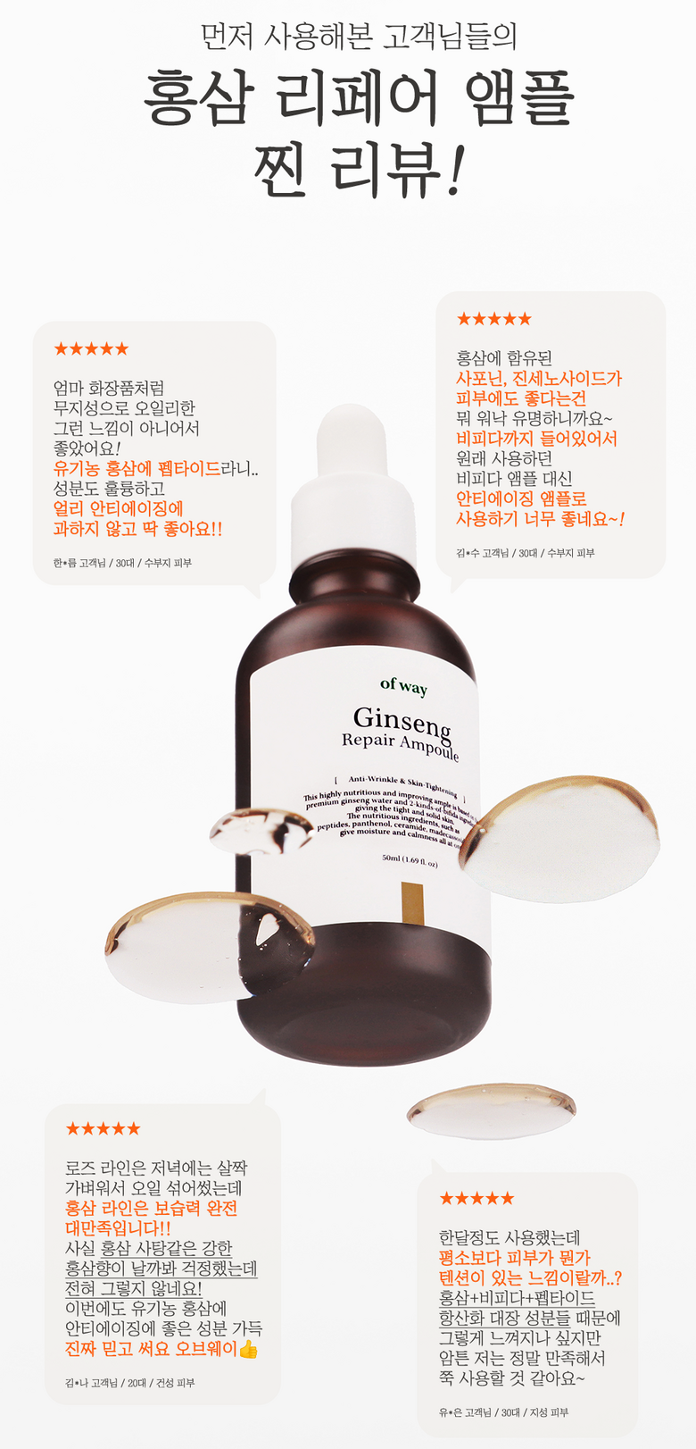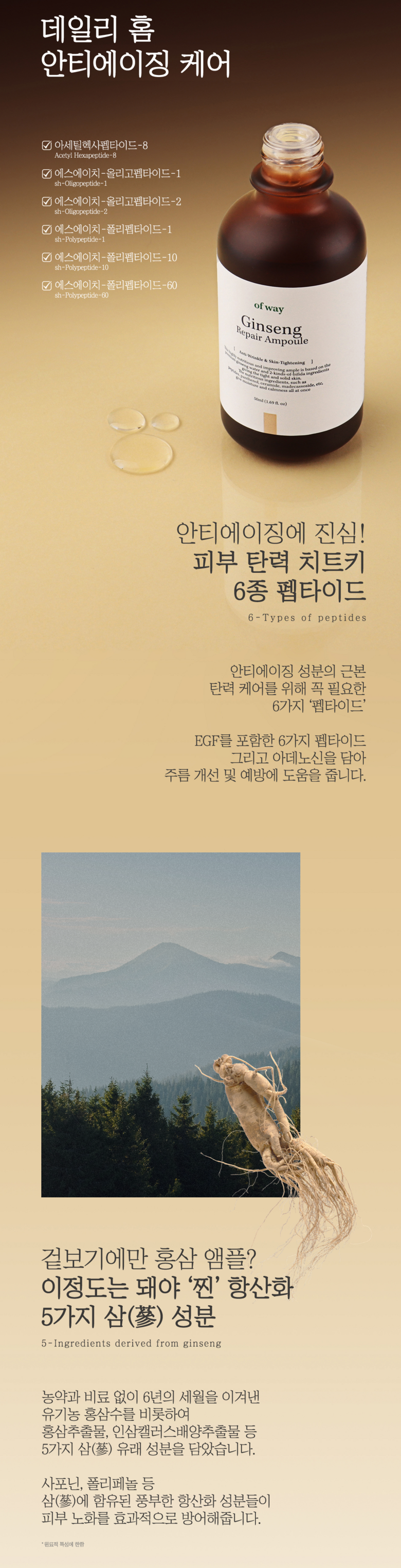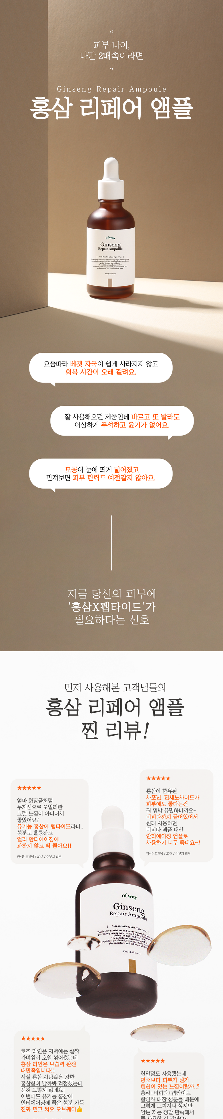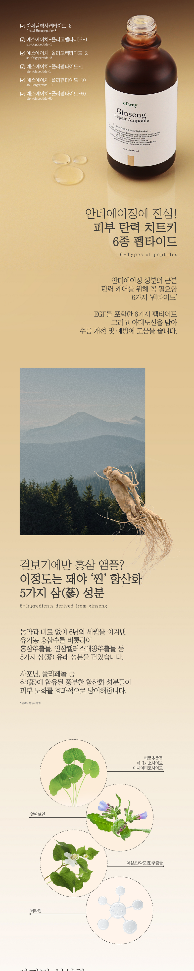 Ovway 6-пептидная ампула для восстановления кожи с органическим красным женьшенем, 1 шт., 50 мл