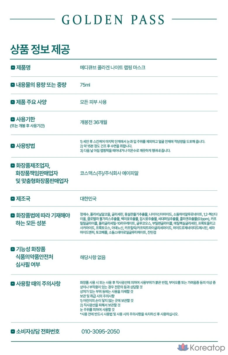 Ночная коллагеновая маска-пленка Medicube, 75 мл, 1 шт., 1 упаковка
