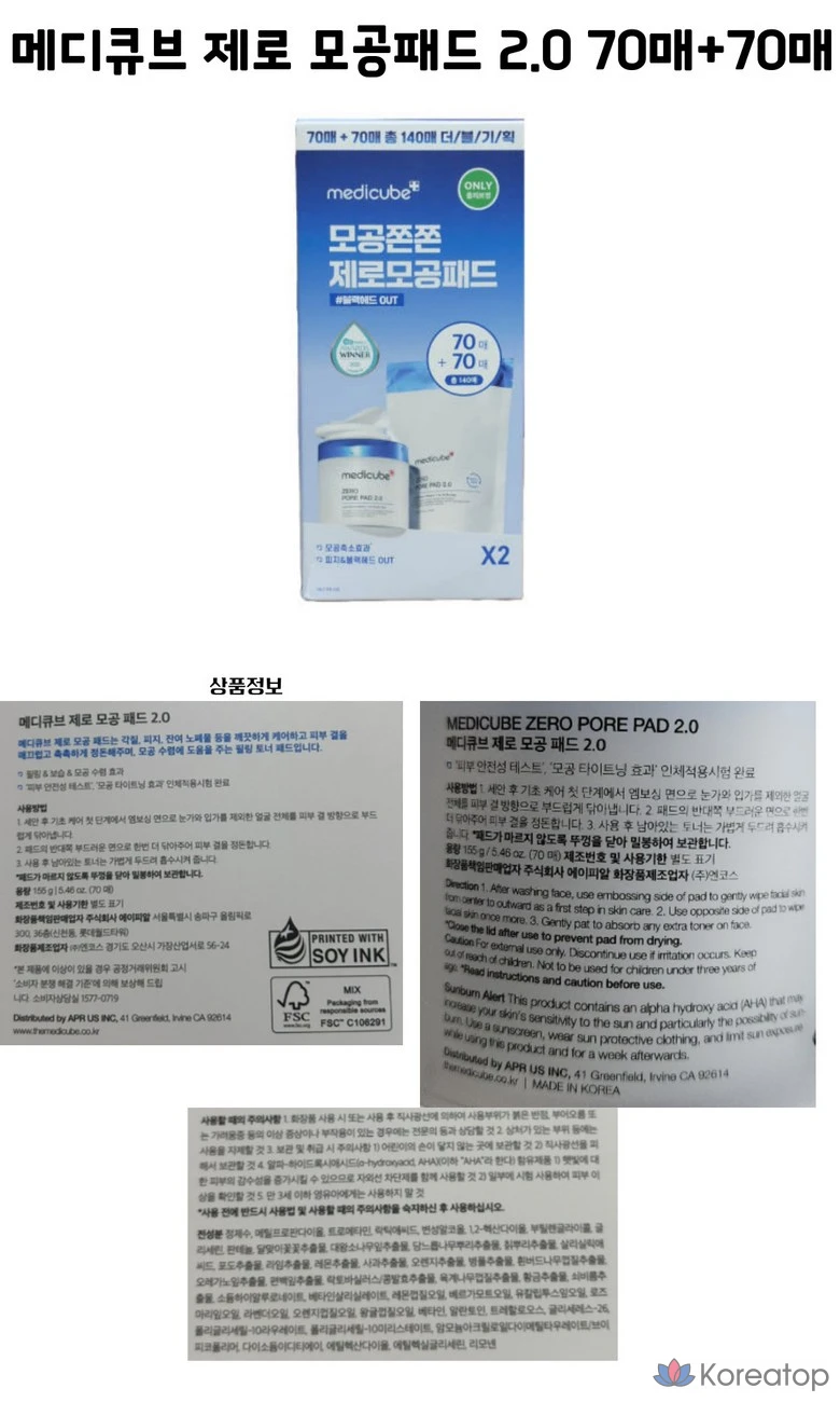 Подушечки для очищения пор Medicube Zero Pore Pad 2.0, 140 листов, 1 упаковка