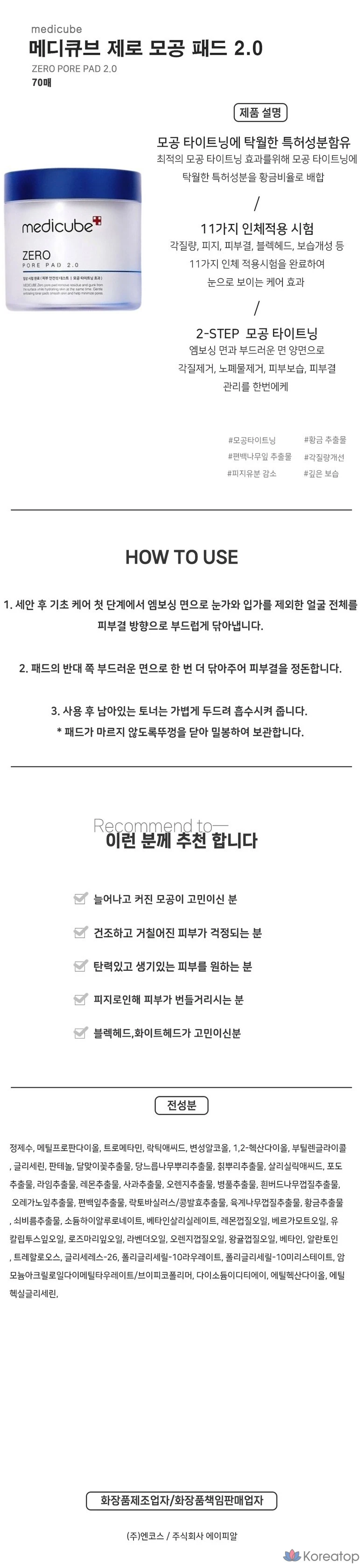 Сменные подушечки для очищения пор Medicube Zero Pore Pad 2.0, 70 листов + 70 листов, 1 упаковка, 2 упаковки