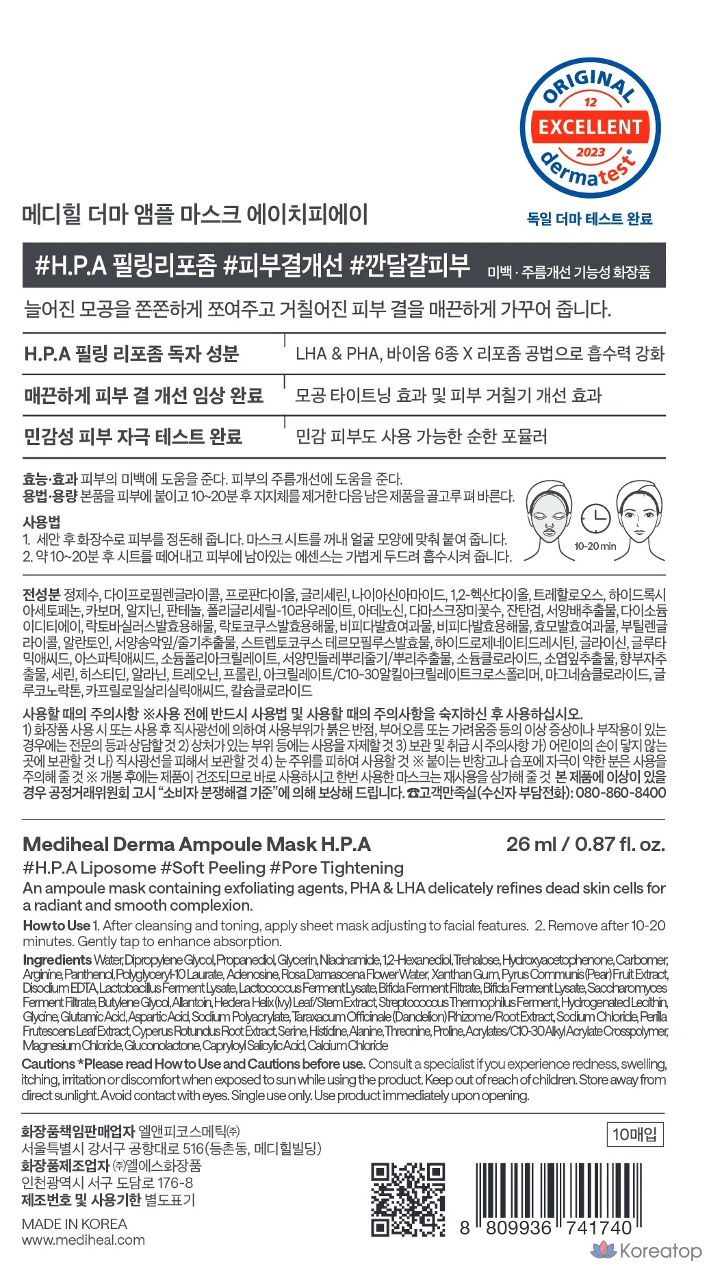 Ампульные маски Mediheal Derma HPA, 10 штук, 1 упаковка