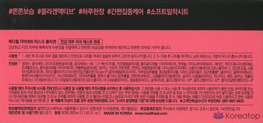 Коллагеновая маска Mediheal Derma365, 30 листов, 1 упаковка.