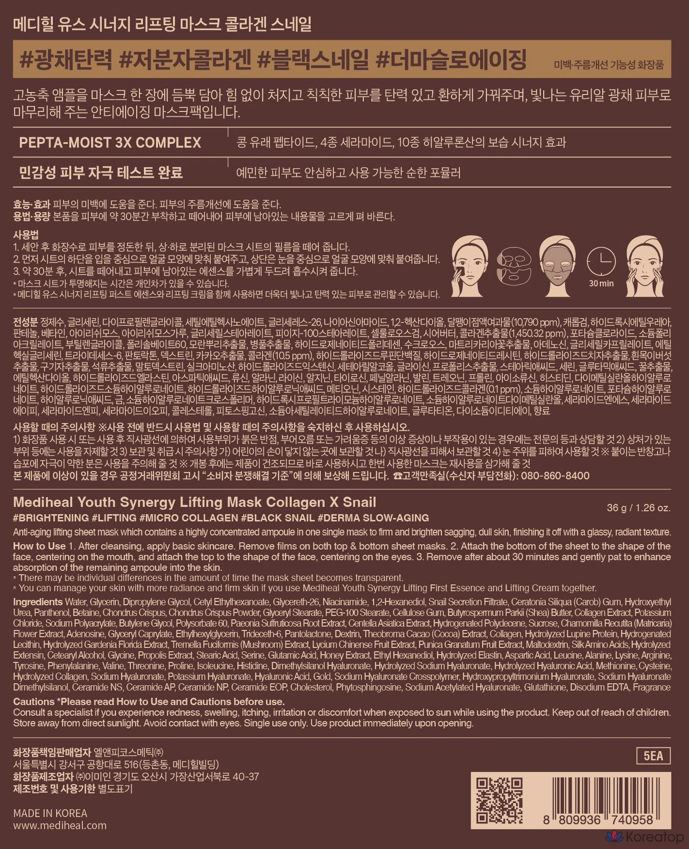Лифтинг-маска Mediheal Youth Synergy, 1 упаковка, 5 штук