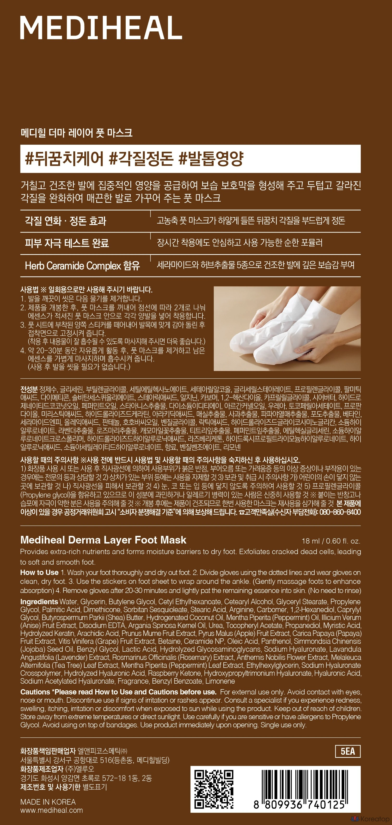 Маска для ног Mediheal Derma Layer, 5 штук, 18 мл, 1 упаковка