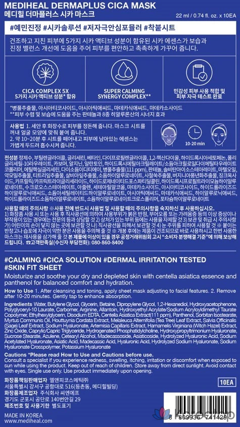Маска Mediheal Derma Plus Cica, 1 упаковка, 10 шт.