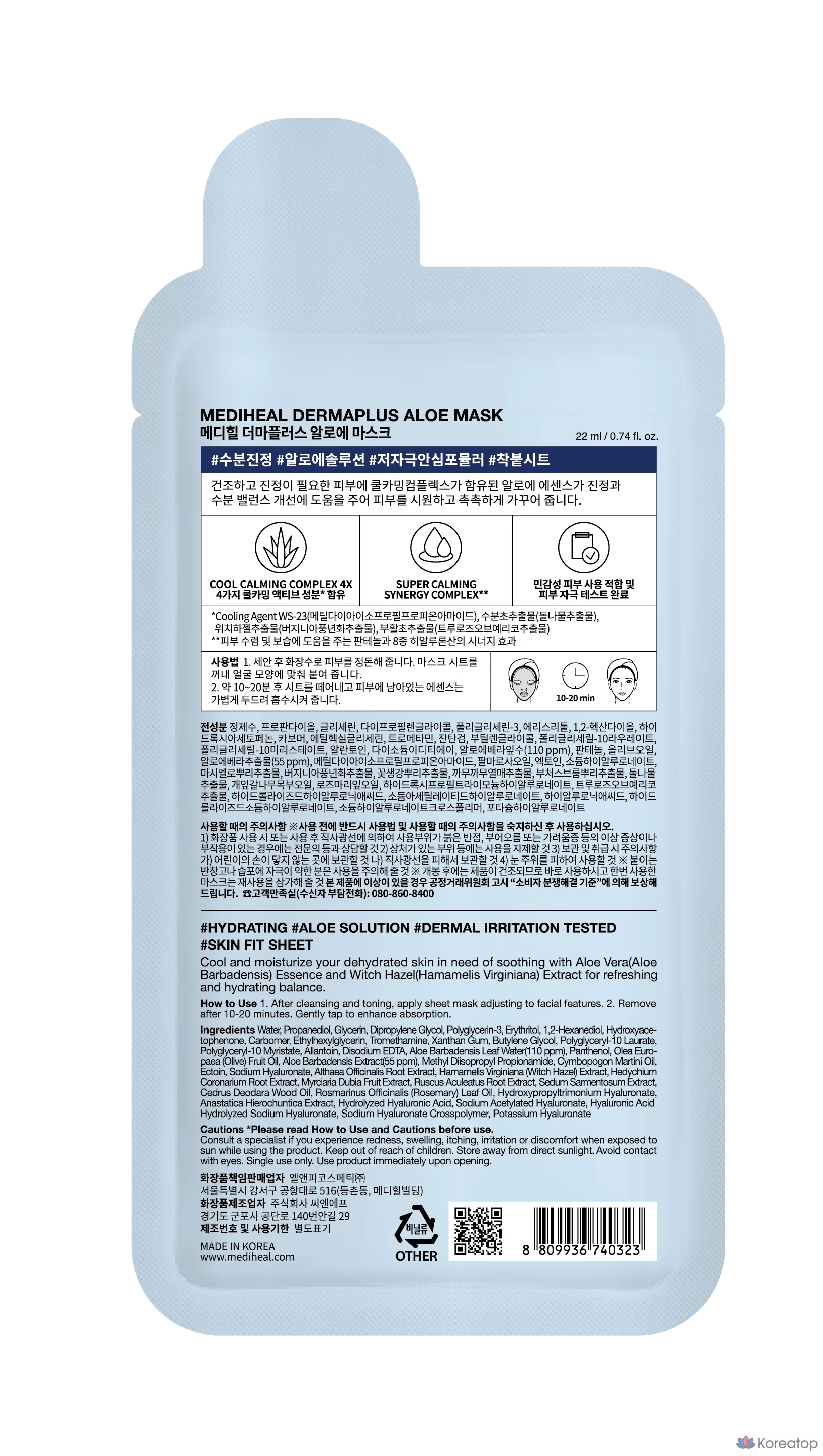 Mediheal Derma Plus Маска с алоэ, 10 шт., 1 упаковка