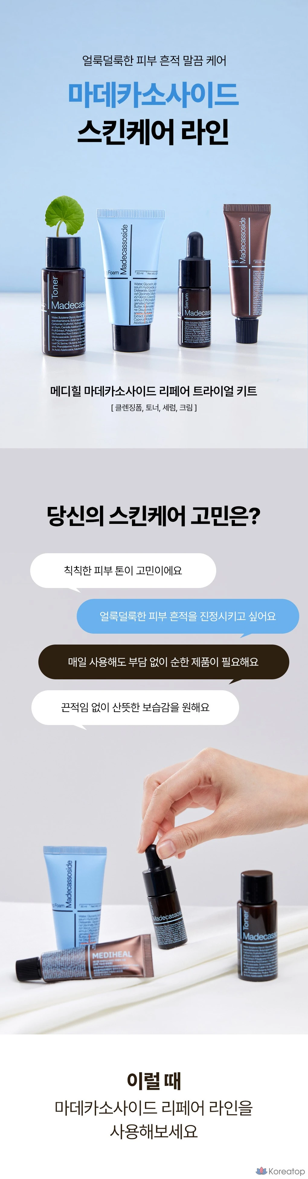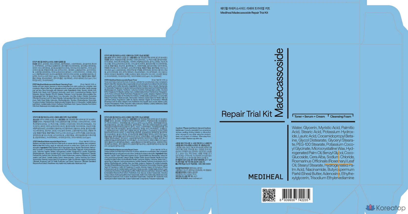 Набор для восстановления кожи Mediheal Madecassoside: очищающая пенка 30 мл + тоник 30 мл + сыворотка 10 мл + крем 20 мл (1 комплект).