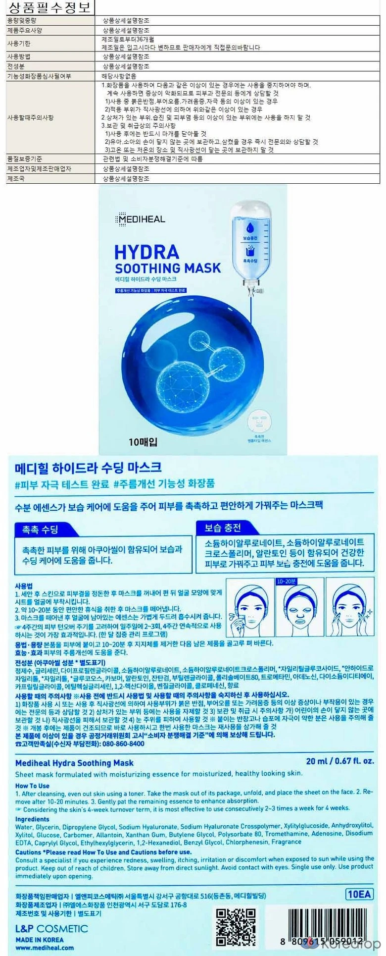 Набор ежедневных масок Mediheal, 1 шт., разглаживание морщин, увлажнение, повышение эластичности, успокаивающее действие, 1 упаковка, 1 штука.
