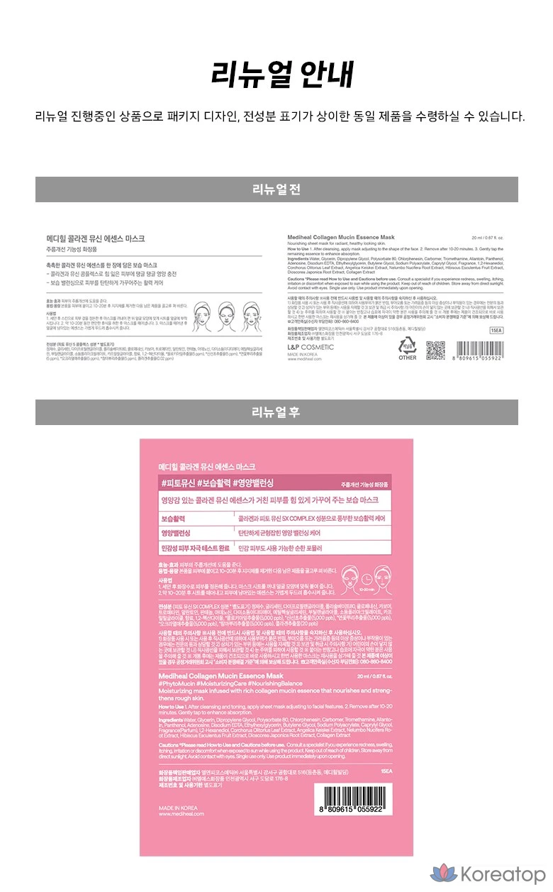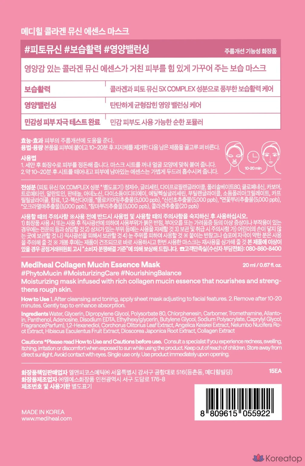Набор из 15 масок-эссенций Mediheal с коллагеном и муцином, 20 мл.