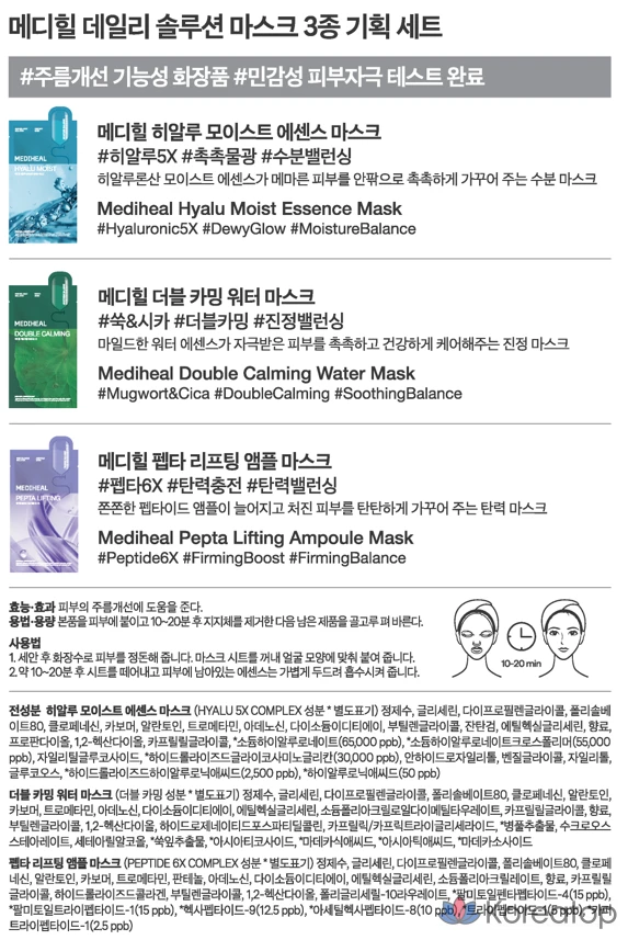 Набор из 3 масок для ежедневного использования Mediheal Daily Solution, 30 штук, 1 упаковка.
