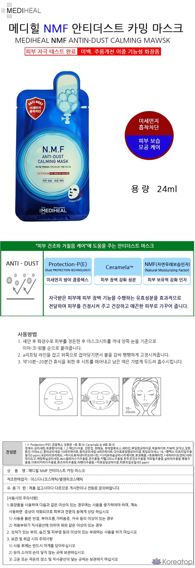 Набор успокаивающих масок Mediheal NMF против пыли, 1 упаковка (10 штук)