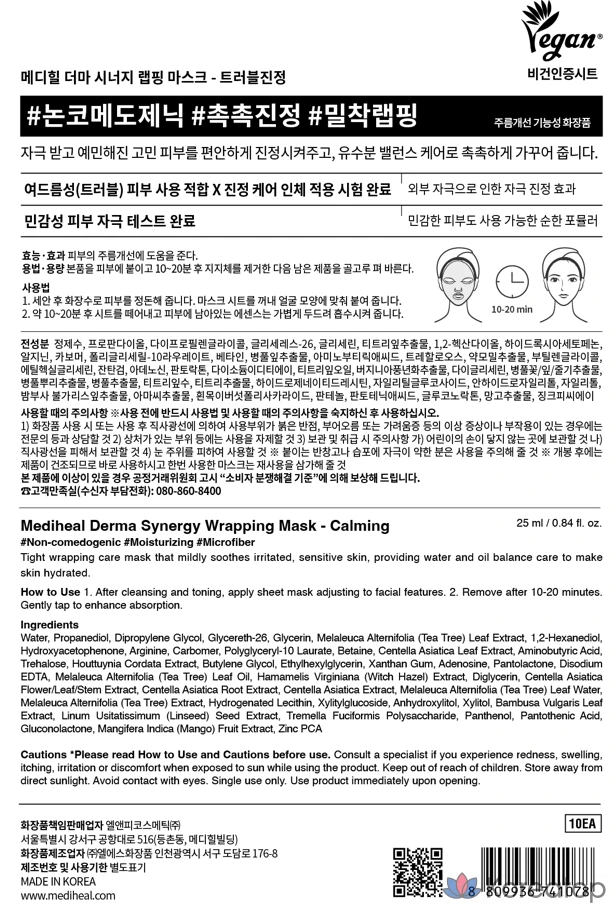 Набор успокаивающих обертывающих масок Mediheal Derma Synergy Trouble, 10 штук, 1 упаковка.