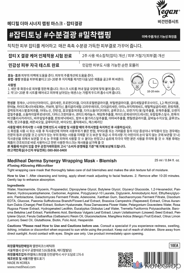Обертывающие маски Mediheal Derma Synergy, 10 штук, 1 упаковка