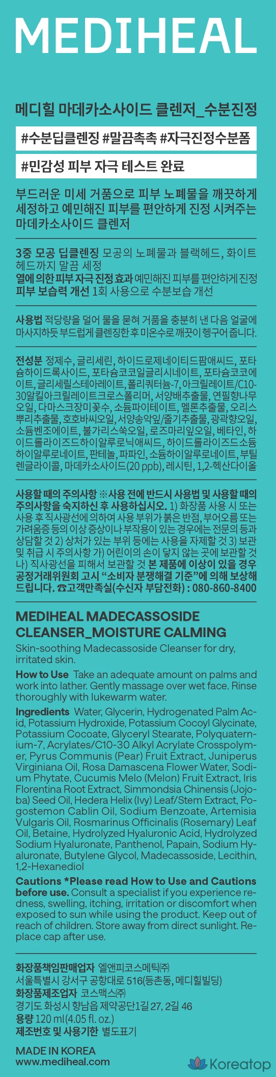 Очищающая пенка для лица Mediheal Madecassoside Moisture Soothing Cleansing Foam, 120 мл, 1 шт.