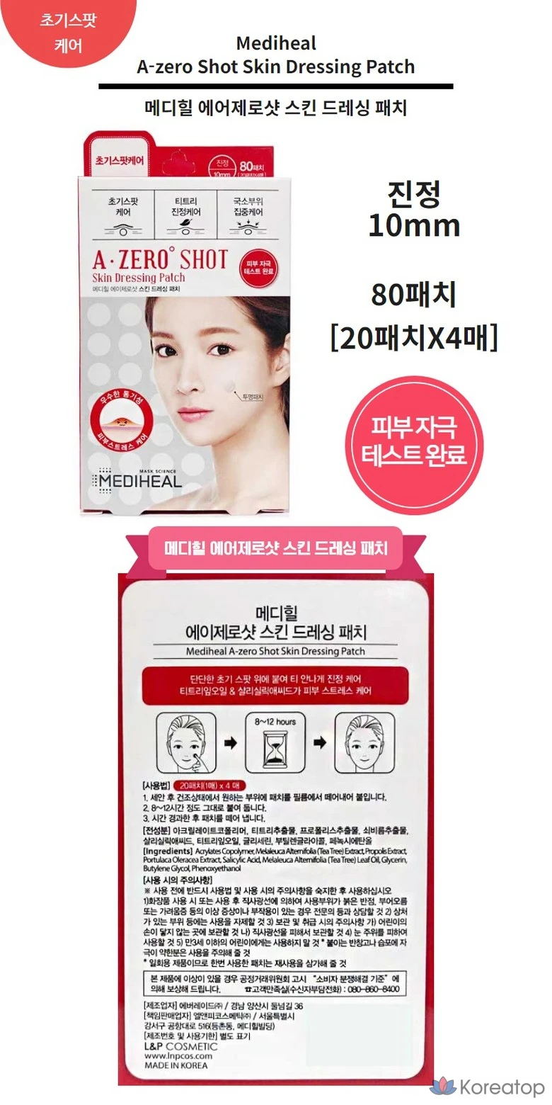 Пластыри для точечного нанесения на кожу Mediheal Azero Shot, 80 штук, 1 упаковка, 80 штук.