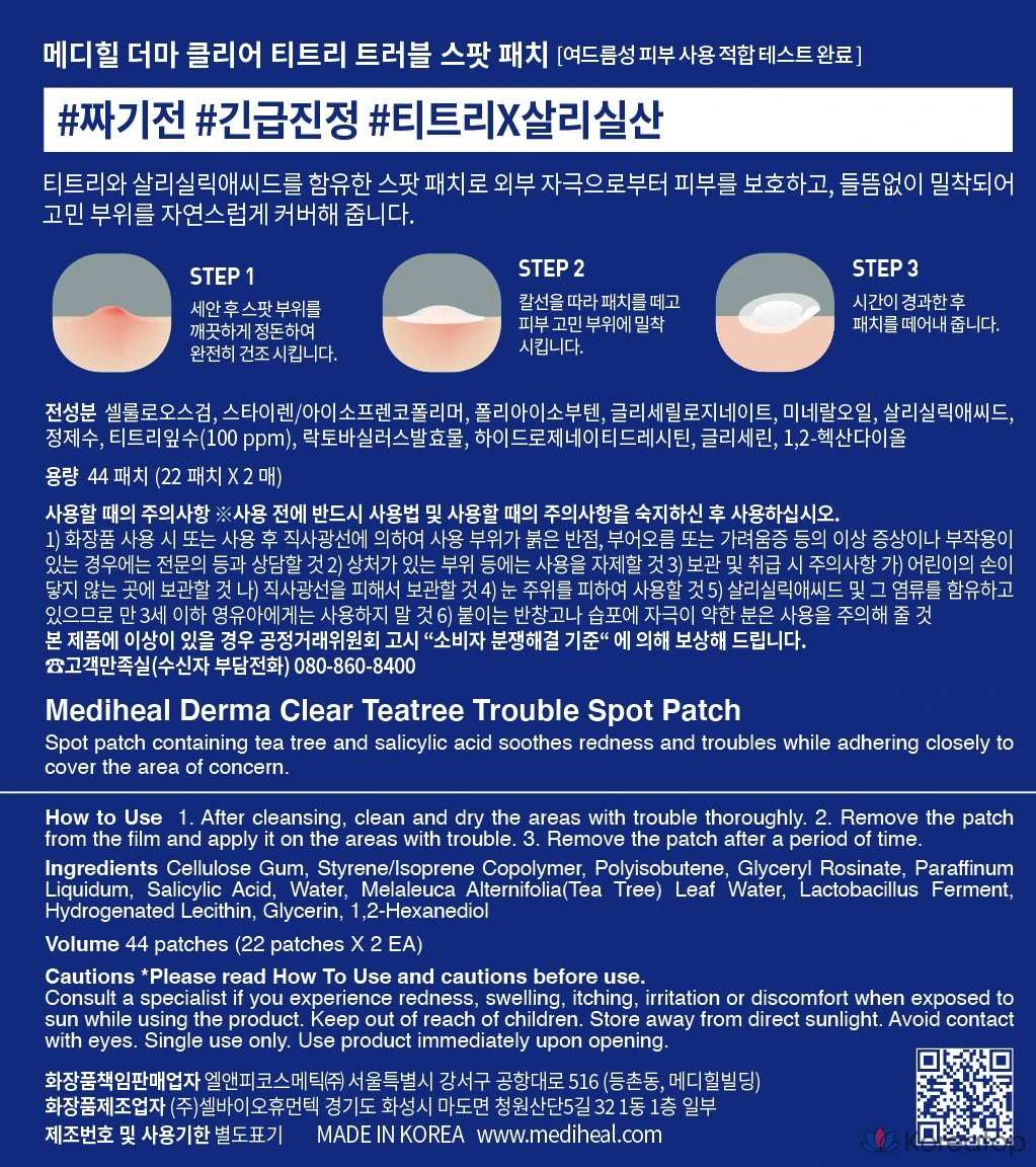 Пластыри Mediheal Derma Clear Tea Tree от проблемных зон, 1 шт., 44 штуки