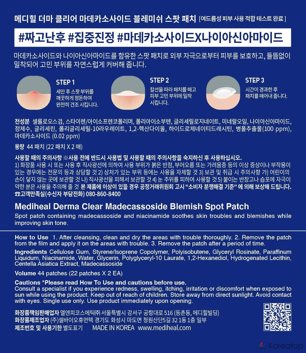 Пластыри от прыщей Mediheal Derma Clear с мадекассозидом, 1 шт., 44 штуки