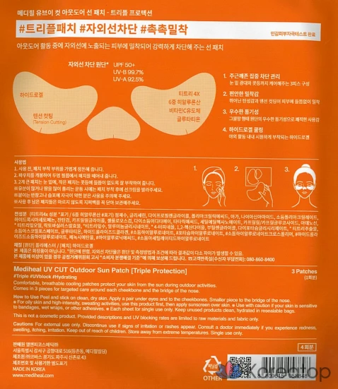 Солнцезащитные пластыри Mediheal UV Cut Outdoor Triple Protection Sun Patch, 3 вида, 4 шт., UPF50+, 20 г, 1 шт.
