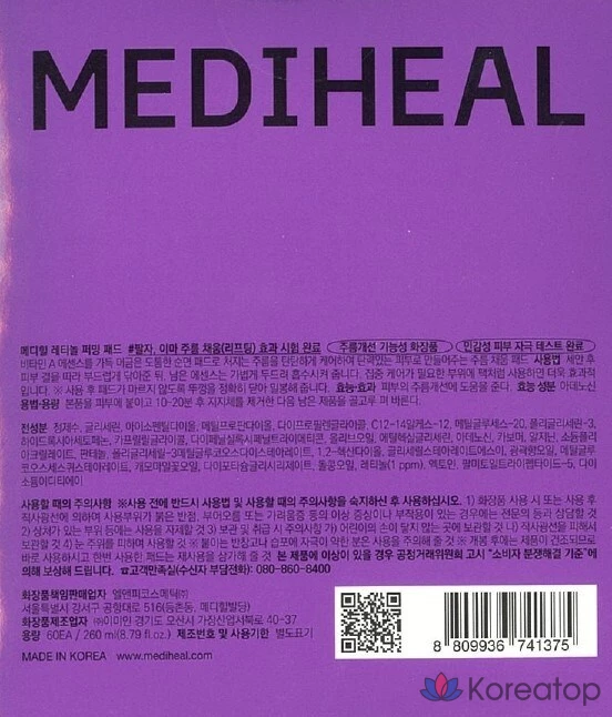 Укрепляющие подушечки Mediheal с ретинолом, 260 мл, 1 шт., 60 штук.